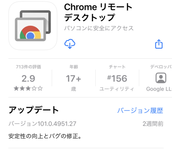 まずスマホやPadに、Chromeリモートデスクトップをダウンロードします。
