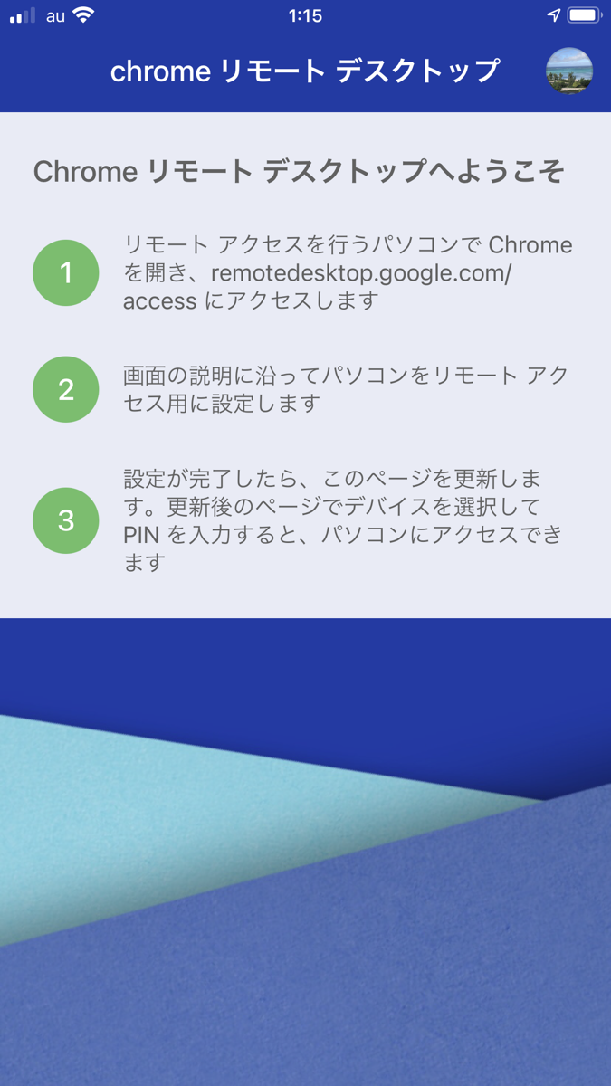 ここまで完了しましたら、スマホ側のChromeリモートデスクトップを起動していただくと、