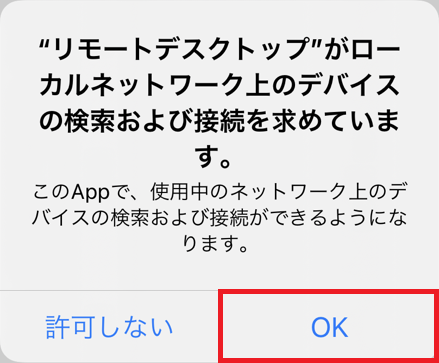 接続の許可を求めてきますので「OK」をクリックしてください。
