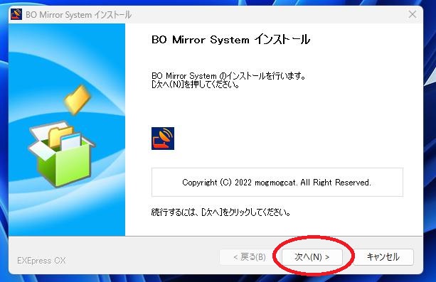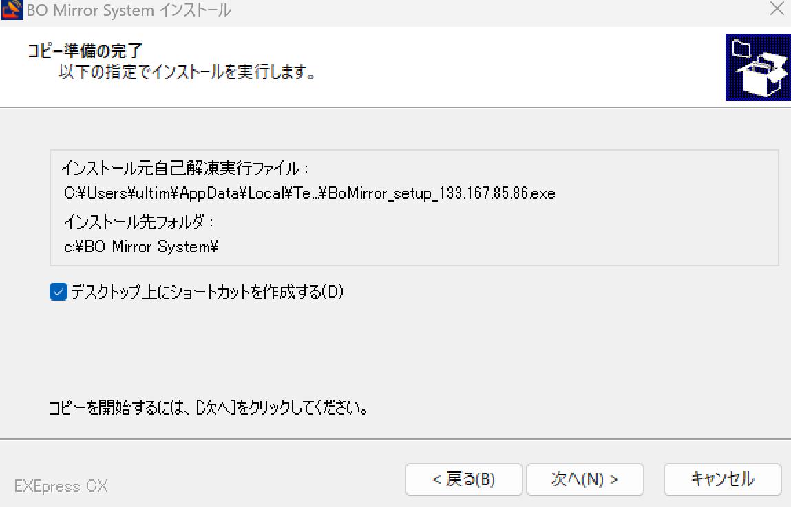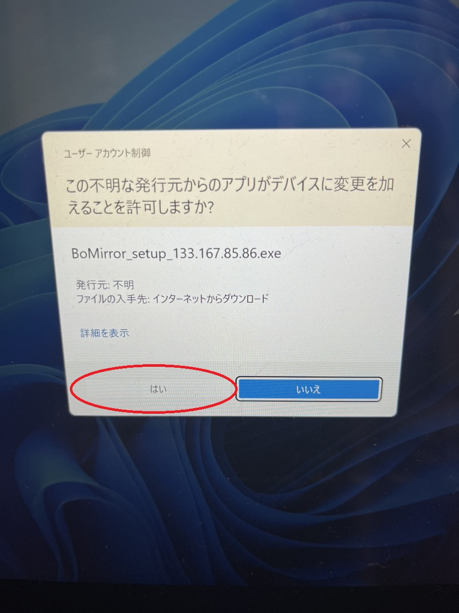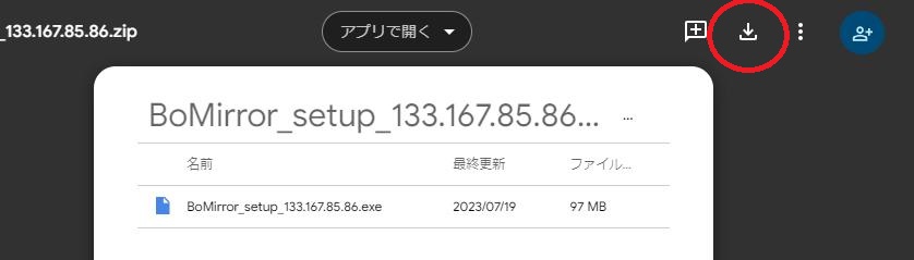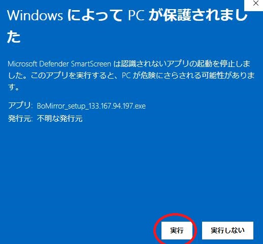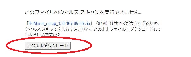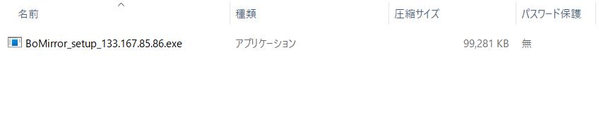 それでは【BoMirror_setup_133.167.85.86.exe】をダブルクリックしてください。